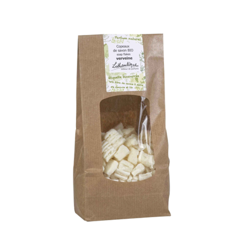Эти органические мыльные хлопья с запахом вербены рекомендуются для стирки деликатного белья. Разбавленные в горячей воде, они становятся альтернативой средствам для стирки. Они удалят стойкие пятна и могут быть использованы для изготовления самодельного многоцелевого жидкого средства для стирки.