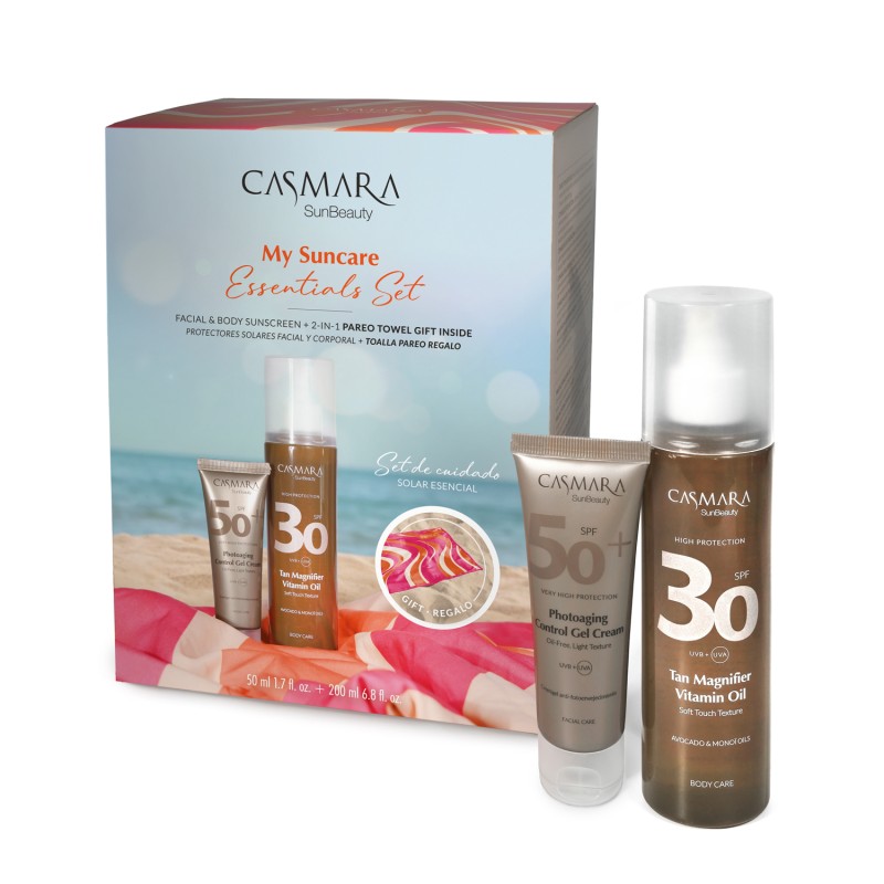 Набор Photoaging Крем-гель для лица против фотостарения SPF50 + масло для загара СПФ30 + полотенце